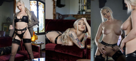 A tattooed blond in black lingerie from Kendra